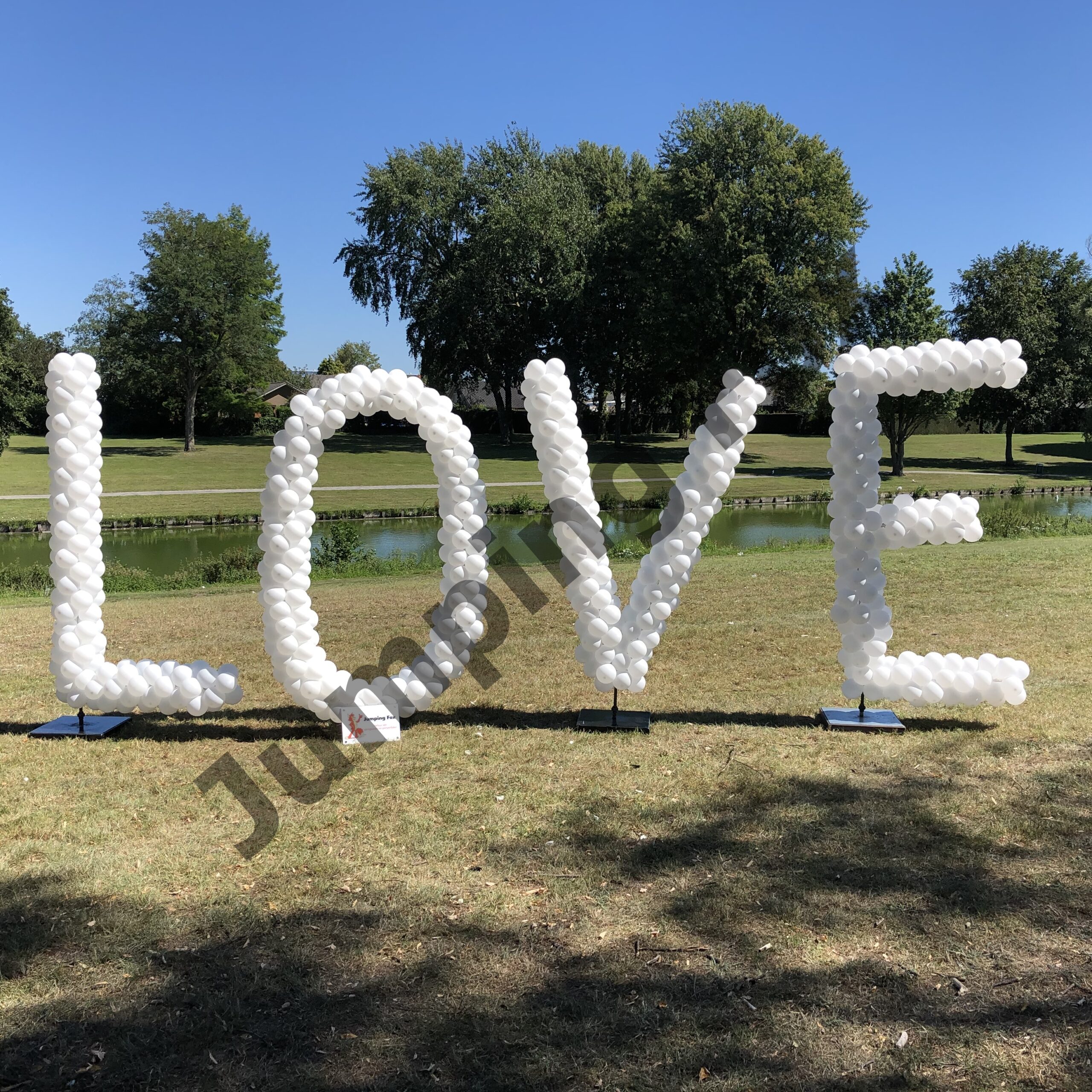 De ballonnen staan op een speciaal frame, deze standaard is eigendom van Jumping Fox en dient in overleg weer opgehaald te worden.
