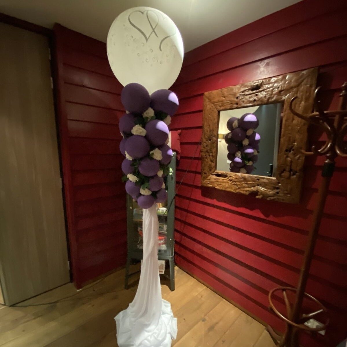 Ballonnen liefdes pilaar wit met paars en roosjes